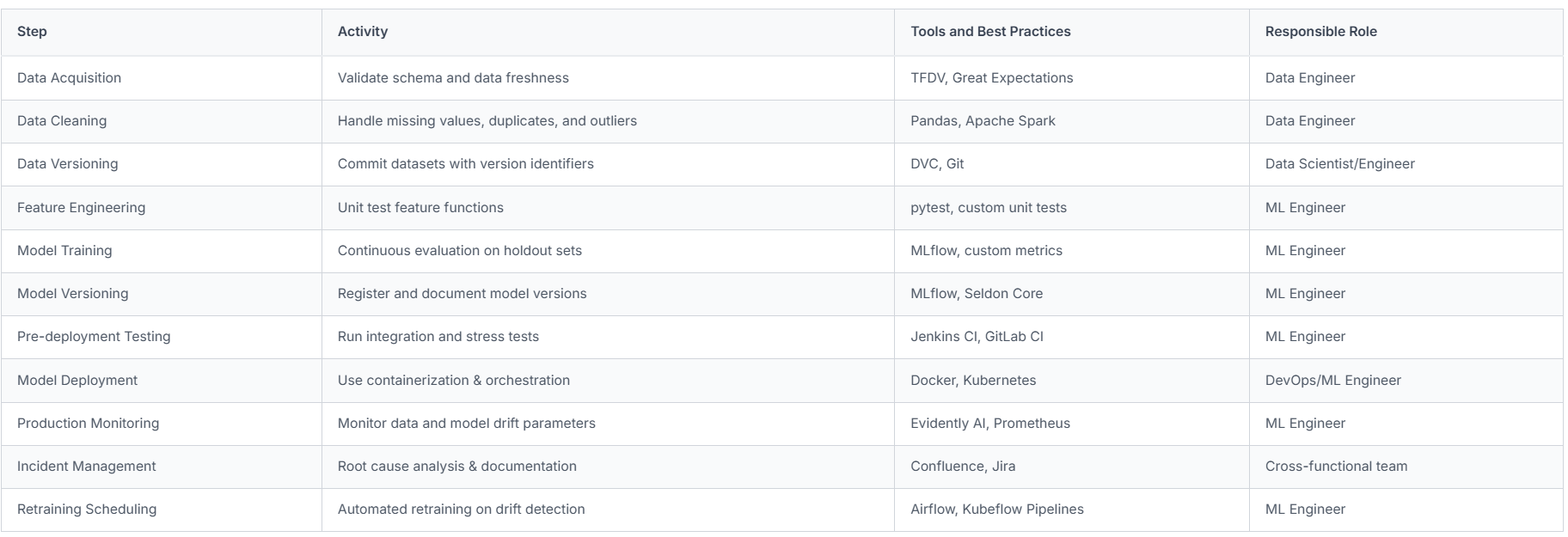 This operator playbook offers a detailed step-by-step methodology ML engineers can implement to maintain exemplary pipeline hygiene. By adopting these best practices, employers empowering teams who hire ML developers or hire dedicated ML developers will ensure resilient and scalable AI systems. We present actionable tactics grounded in industry standards, research, and practical experience for data cleaning, validation, model versioning, testing, monitoring, and lifecycle maintenance. Additionally, a practical template at the end standardizes hygiene workflows, empowering teams and simplifying oversight.