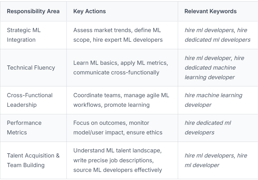Hiring Note: When PMs articulate clear technical requirements, they can more effectively hire dedicated machine learning developer talent aligned with project goals.